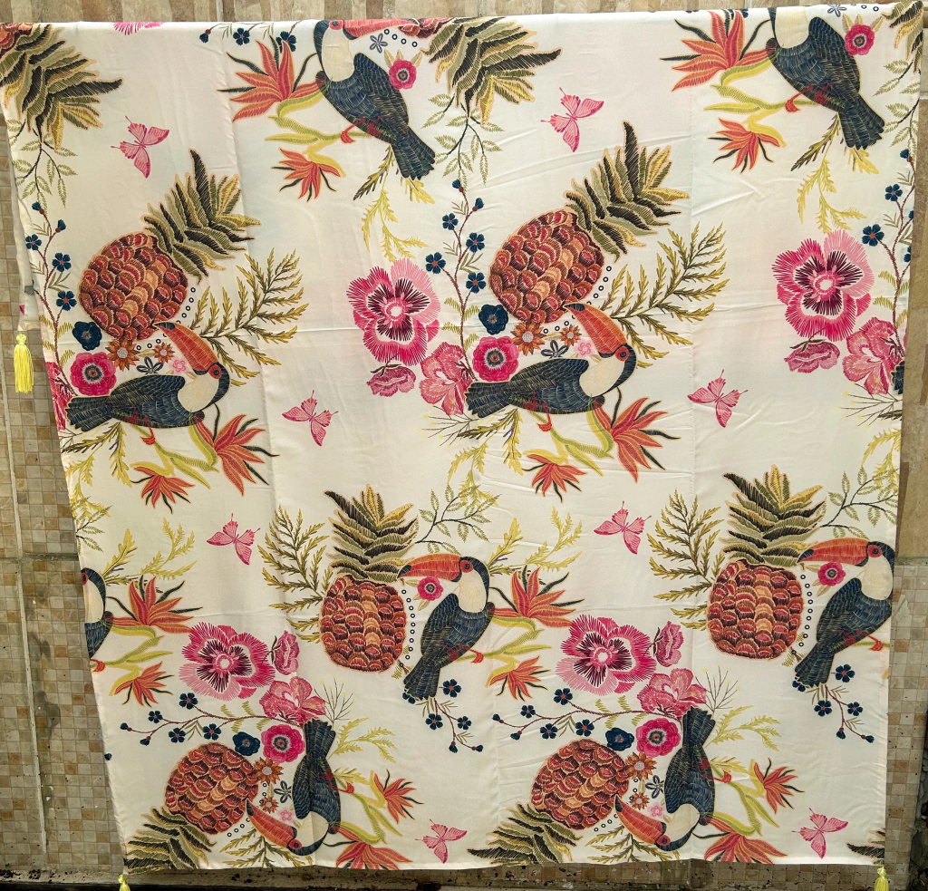 Produzidas em crepe de seda, nossas cangas apresentam estampas digitais vibrantes e coloridas, que trazem um ar de frescor e sofisticação ao seu visual.